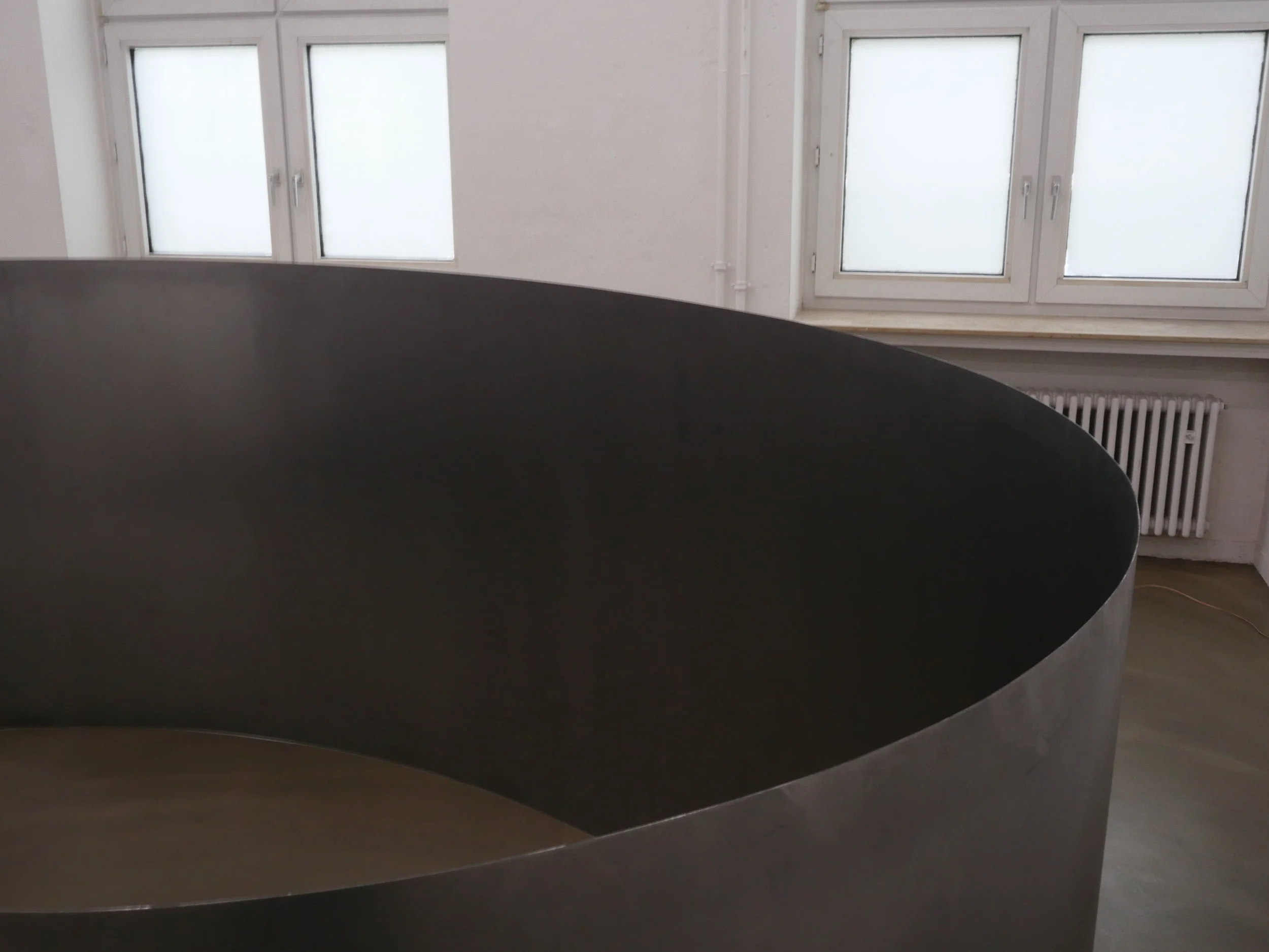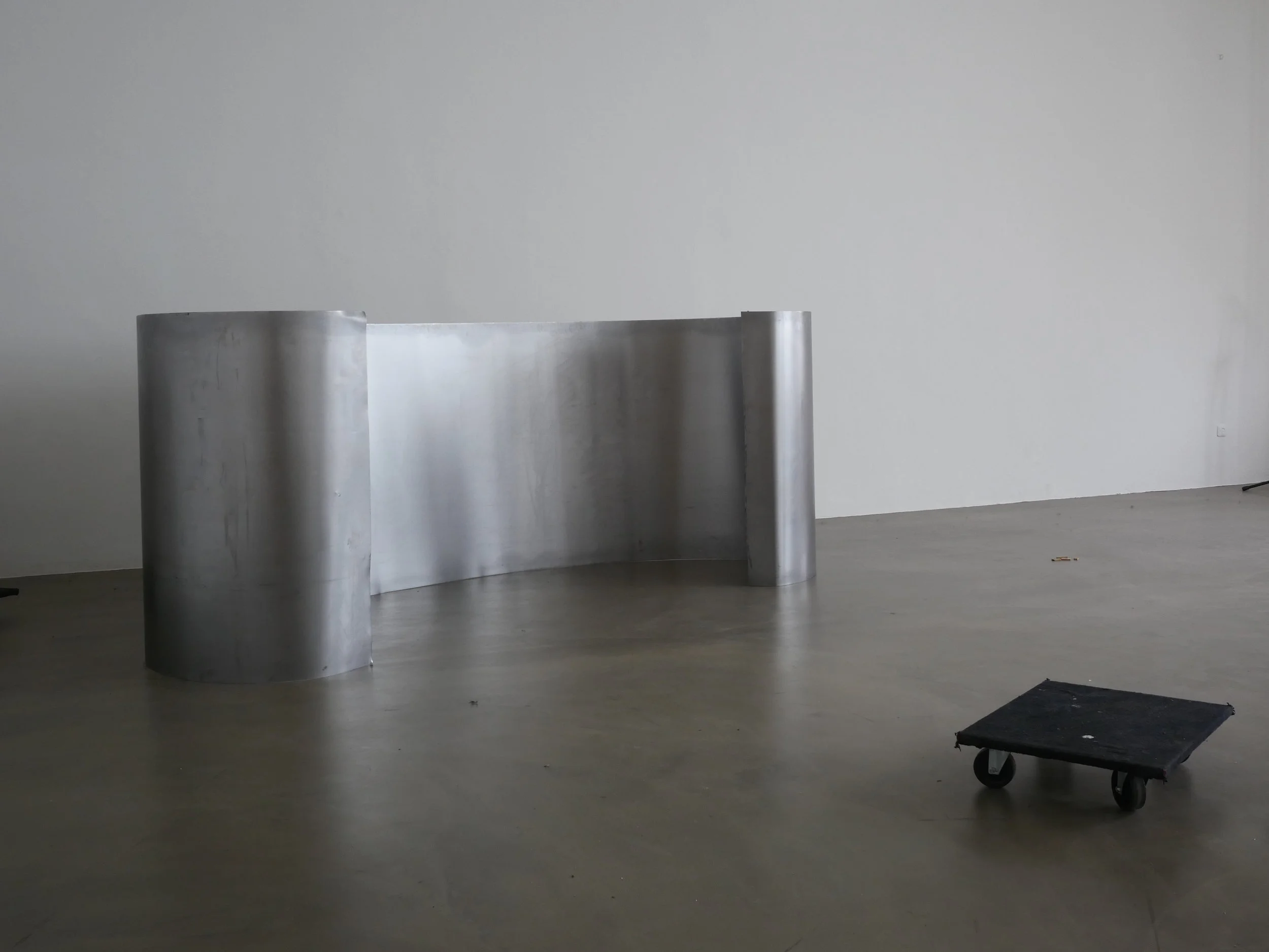 A microphone and audio transducer are directly connected using the material of the work itself; a connection which, at high levels of amplification, results in the creation of an acoustic feedback loop. As the transducer plays back this sound, the work transforms into a series of large scale sonic objects, sounding in direct relation to their inherent physical resonant properties.