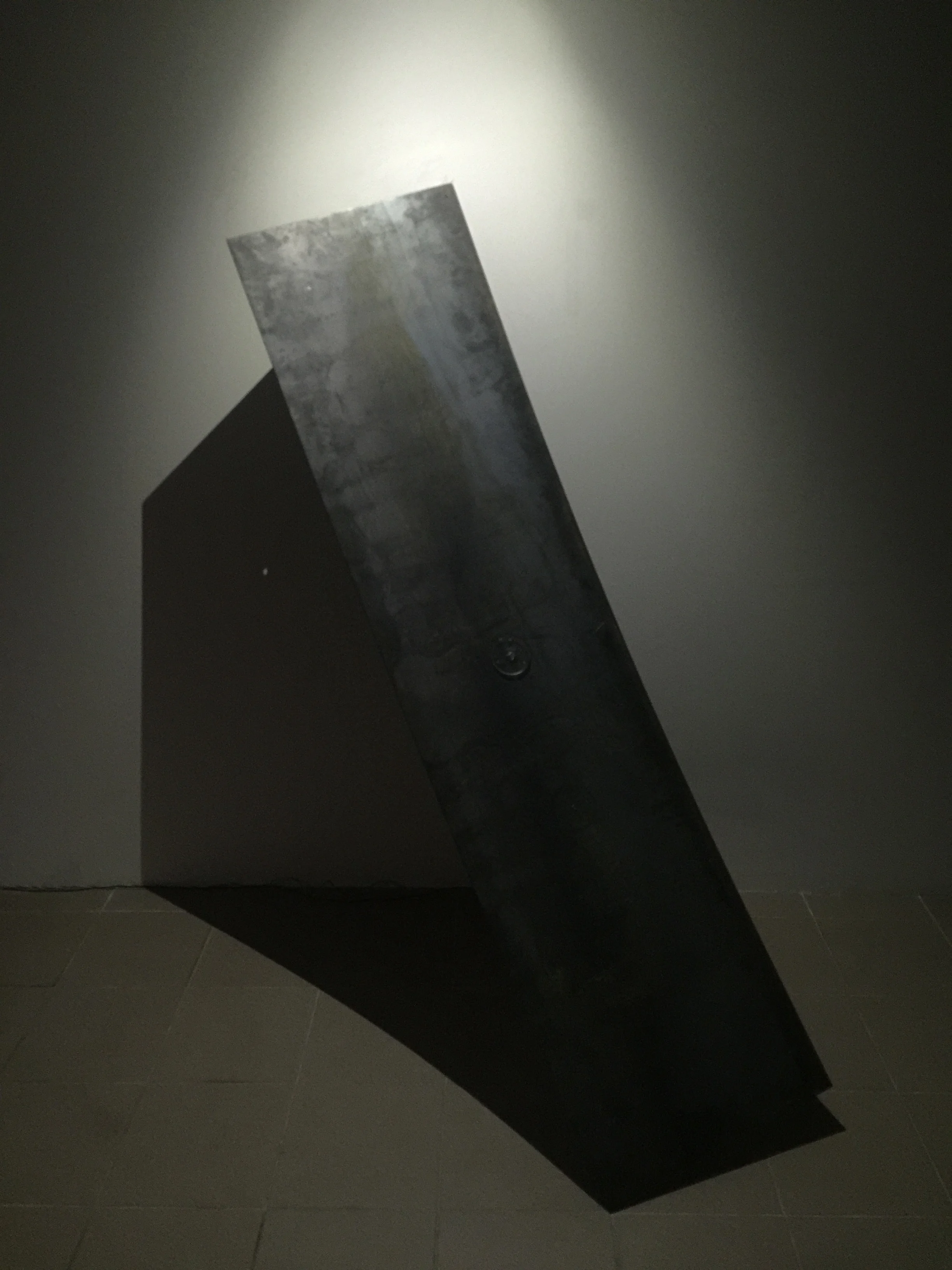 2000 X 1000 X 0.6mm steel plate with flowers, audio transducer and contact microphone. 2016.